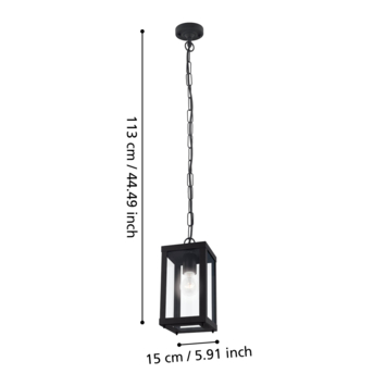 De Eglo hanglamp Alamonte zwart is een stijlvol armatuur geschikt voor zowel binnen- als buitengebruik. Met IP beschermingsklasse IP44 is de lamp spatwaterdicht. De Alamonte is geschikt voor een lichtbron met een E27 fitting en een maximaal wattage van 60 watt.