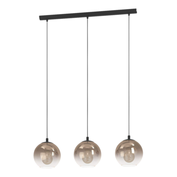 De Eglo 3-lichts hanglamp Ariscani is door het speciale kleurverloop in het glas met een mooie zwarttint een eyecatcher! Deze bollen van de hanglamp zijn van glas, gecombineerd met metaal en zijn geschikt voor E27 lampen (niet meegeleverd). De bol van de hanglamp heeft een diameter van 20 cm. De lichtbronnen zijn niet inbegrepen bij deze hanglamp Ariscani, maar dan heb je de mogelijkheid om bv. te kiezen voor een dimbare lichtbron. Door middel van een externe dimmer kan deze lamp vervolgens worden gedimd.