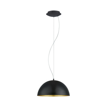 De Eglo Gaetano hanglamp is specifiek ontworpen om alleen te worden gebruikt met een E27 lichtbron. De lampenkap heeft een buitenkant in het zwart en een binnenkant met een goudkleurige afwerking, wat de lamp een robuuste uitstraling verleent. Met een ronde lampenkap en een diameter van 38 cm, kan de hoogte van de lamp worden aangepast naar wens. Deze hanglamp is vervaardigd uit metaal.