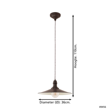 De Eglo Stockbury hanglamp is specifiek ontworpen om uitsluitend te worden gebruikt met een E27 lichtbron. Deze hanglamp heeft een prachtige antieke bruine kleur, waarbij de onderkant van de lampenkap in een zachte beige tint is uitgevoerd. Dankzij de ronde vorm van de lampenkap wordt er een aangename sfeer gecreëerd en wordt de ruimte goed verlicht. Tijdens de installatie van de lamp is het mogelijk om de hoogte naar eigen wens in te stellen. De hanglamp heeft een diameter van 36 cm.