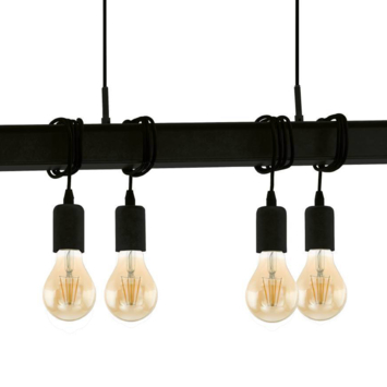 Met deze hanglamp heb je een moderne sfeermaker in huis. De lamp is gemaakt van zwart staal en heeft daardoor een industrieel effect. De lamp voor aan het plafond bestaat uit zes lampen die elk aan een draad bevestigd zijn. Deze lampen met draad kun je naar eigen smaak om de stalen balk wikkelen. Hierdoor kun je dus zelf kiezen hoe hoog de lampjes moeten komen te hangen. De lamp heeft E27 fittingen, is ca. 100 cm breed en is zeer geschikt voor diverse woonkamers. Kortom: met de Eglo Townshend hanglamp heb je een robuuste en moderne lamp in huis.