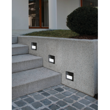 De ARACENA LED-inbouwarmatuur voor buiten met een diameter van 140 x 140 mm heeft een vierkante basis van zwarte kunststof en een helder zwart glazen oppervlak, wat dit model een moderne, schitterende uitstraling geeft. De geïntegreerde neutraalwitte LED's zorgen voor een optimale en indirecte verlichting van de directe omgeving. Deze LED's kunnen indien nodig worden vervangen. Beschermd tegen waterstralen (IP65) kan deze inbouwarmatuur zonder vrees buiten worden gebruikt en zorgt ze voor een harmonieuze trapverlichting. Hij heeft een inbouwdiepte van 95 mm en vereist een uitsparing van 133 x 130 mm. Met zijn moderne ontwerp kan deze buitenlamp in bijna elke buitenruimte worden geïntegreerd, op een terras, op een trap of in een gang.