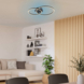 De plafondlamp PALMAVES 3 CCT/RGB-LED van zwart metaal heeft twee ronde verlichtingselementen van verschillende grootte. De achter de witte plastic kapjes geïntegreerde LED's kunnen met de meegeleverde afstandsbediening eenvoudig van functioneel wit licht aangepast worden naar aangenaam warm wit licht. Ook kun je deze plafondlamp dimmen of op een timer zetten via deze afstandsbediening. Daarnaast is de achterzijde voorzien van RGB LED's. Hiermee creëer je d.m.v. de afstandsbediening je eigen ambiance backlight. Dankzij het minimalistische ontwerp biedt deze plafondlamp moderne verlichting in elke ruimte, of het nu gaat om een keuken, woonkamer, slaapkamer, hal of eetkamer.
