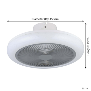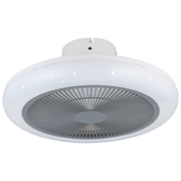 De KOSTRENA LED plafondlamp met geïntegreerde ventilator heeft een compacte behuizing van ABS-kunststof met een opalen afwerking en een grijs ventilatie-element in het midden. Door het compacte ontwerp is deze gecombineerde plafondlamp/ventilator ideaal voor woningen met lage plafonds en past hij bij diverse interieurstijlen. De ventilator is is d.m.v. de meegeleverde afstandsbediening regelbaar met drie verschillende snelheden, terwijl de geïntegreerde LED-componenten via de diffuser een regelbaar wit licht produceren. Deze moderne plafondventilator heeft een ingebouwde AC-motor en een luchtstroom-vermogensverhouding van 1960 m³/min. Met een veelzijdig ontwerp biedt deze multifunctionele plafondventilator een scala aan voordelen en past hij ideaal in elke kamer.