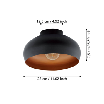 De plafondlamp MOGANO bestaat uit een ronde zwarte metalen kap met een koperkleurige binnenkant. Deze plafondlamp past perfect in moderne interieurs. Ze zorgt voor minimalistische verlichting in elke ruimte, of het nu gaat om een keuken, woonkamer, slaapkamer of hal. De lichtbron is niet inbegrepen. Het armatuur is compatibel met elke E27 lamp.