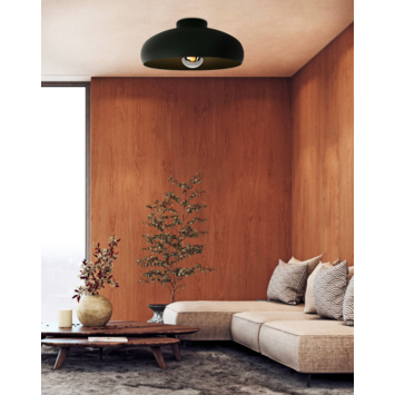 De plafondlamp MOGANO is gemaakt met een ronde lampenkap van zwart metaal en een gelijkgekleurde binnenkant. Met haar monochrome ontwerp past de plafondlamp naadloos in moderne interieurs. Hij biedt minimalistische verlichting voor elke kamer - of het nu in de keuken, woonkamer, slaapkamer of hal is. De afgebeelde lichtbron is niet inbegrepen. De lamp is geschikt voor elke lichtbron met een E27-fitting.