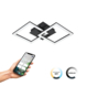 De plafondlamp PARANDAY ZIGBEE CONNECT CCT-LED van zwart metaal heeft twee grote vierkante verlichtingselementen waarvan er 1 draaibaar is. De achter de witte plastic kapjes geïntegreerde LED's kunnen via een gratis app of met een optionele afstandsbediening eenvoudig van functioneel wit licht aangepast worden naar aangenaam warm wit licht. Ook kun je deze plafondlamp dimmen of programmeren via de App. Daarnaast is deze lamp bedienbaar via de bekende Voice control devices (Alexa, Google assistent). Dankzij het minimalistische ontwerp biedt deze plafondlamp moderne verlichting in elke ruimte, of het nu gaat om een keuken, woonkamer, slaapkamer, hal of eetkamer.