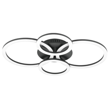 De plafondlamp PARRAPOS ZIGBEE CONNECT CCT-LED van zwart metaal heeft vier ronde verlichtingselementen van verschillende grootte. De achter de witte plastic kapjes geïntegreerde LED's kunnen via een gratis app of met een optionele afstandsbediening eenvoudig van functioneel wit licht aangepast worden naar aangenaam warm wit licht. Ook kun je deze plafondlamp dimmen of programmeren via de App. Daarnaast is deze lamp bedienbaar via de bekende Voice control devices (Alexa, Google assistent). Dankzij het minimalistische ontwerp biedt deze plafondlamp moderne verlichting in elke ruimte, of het nu gaat om een keuken, woonkamer, slaapkamer, hal of eetkamer.