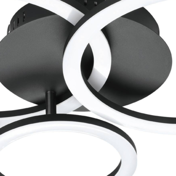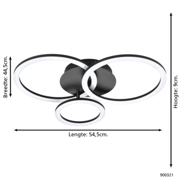 De plafondlamp PARRAPOS ZIGBEE CONNECT CCT-LED van zwart metaal heeft drie ronde verlichtingselementen van verschillende grootte. De achter de witte plastic kapjes geïntegreerde LED's kunnen via een gratis app of met een optionele afstandsbediening eenvoudig van functioneel wit licht aangepast worden naar aangenaam warm wit licht. Ook kun je deze plafondlamp dimmen of programmeren via de App. Daarnaast is deze lamp bedienbaar via de bekende Voice control devices (Alexa, Google assistent). Dankzij het minimalistische ontwerp biedt deze plafondlamp moderne verlichting in elke ruimte, of het nu gaat om een keuken, woonkamer, slaapkamer, hal of eetkamer.