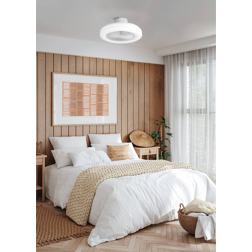 De ORTONA LED plafondlamp met geïntegreerde ventilator heeft een compacte stalen behuizing met een witte ventilatieopening in het midden. Door het compacte ontwerp is deze gecombineerde plafondventilator ideaal voor woningen met lage plafonds en past hij bij diverse interieurstijlen. De ventilator is d.m.v. de meegeleverde afstandsbediening regelbaar met 3 verschillende snelheden en de geïntegreerde LED-componenten produceren regelbaar wit licht voor elke woonsituatie. Met een veelzijdig ontwerp biedt deze multifunctionele plafondventilator een scala aan voordelen en is hij het ideale armatuur voor elke kamer. De Sazan heeft bovendien ook een slimme uitschakelfunctie. Je kunt kiezen of je de ventilator na 2 of 4 uur automatisch wilt laten stoppen.
