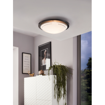 De EGLO wand -en plafondlamp Planet is een lamp gemaakt van staal met een zwarte afwerking en gesatineerd glas. Deze lamp met E27 fitting wordt geleverd exclusief lichtbron(nen) en is geschikt voor een maximaal wattage van 1X25W. De Planet heeft een diameter van 29cm. De wand -en plafondlamp Planet is uitermate geschikt voor toepassing in o. a. : woonkamer, hal en toilet