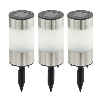 De Eglo Solar LED grondspies set van 3 bestaat uit drie moderne lampen voor in de tuin. Door de ingebouwde zonnecellen hoef je niet na te denken over de stroomvoorziening. De batterij wordt overdag opgeladen zodat de lamp 's avonds kan branden.