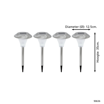 De LED-solar verlichting van Eglo is een mooie toevoeging aan jouw tuin. Deze serie van vier stuks is gemaakt van RVS en gaat dus niet roesten. Deze vier spiezen hebben een aan/uit schakelaar, worden inclusief batterijen geleverd, moet ongeveer 60mm diep bevestigd worden en is totaal 280mm hoog. Met deze solar-spiezen maak je jouw tuin compleet!