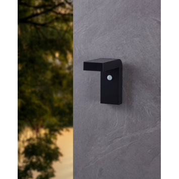 Deze Corbezzola wandlamp voor buiten is gemaakt van zwarte aluminium en kunststof. Hij bevat een LED lichtbron en werkt op zonne-energie via het ingebouwde zonnepaneel. Bovendien is de buitenlamp uitgerust met een bewegingssensor en schakelt het licht automatisch in wanneer er beweging gedetecteerd wordt. Slecht zichtbare plekken worden verlicht en ongewenste gasten worden afgeschrikt. Met IP44-bescherming tegen spatwater is deze wandlamp geschikt voor buitengebruik.