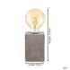 De lamp is gemaakt van keramiek en afgewerkt met betonlook, en is geschikt voor een lamp met een grote fitting (E27). Afmetingen zijn 13 cm hoog en 9 cm breed en diep. Inclusief snoerschakelaar.