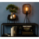 De ROMAZZINA tafellamp bestaat uit een ronde kap van zwartkleurige platte metalen stroken en een metalen voet met drie poten. De metalen strips creëren een fascinerend spel van licht en schaduw wanneer de lamp wordt ingeschakeld. Hij kan ook gemakkelijk worden in- en uitgeschakeld met een schakelaar op de kabel. De New Nordic design tafellamp past perfect in moderne interieurs. Het biedt een modern ontwerp voor elke kamer - of het nu in de slaapkamer, op het nachtkastje, in de woonkamer, eetkamer of hal is. De afgebeelde gloeilamp is niet inbegrepen. Het armatuur is geschikt voor alle lampen met E27 fitting.