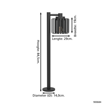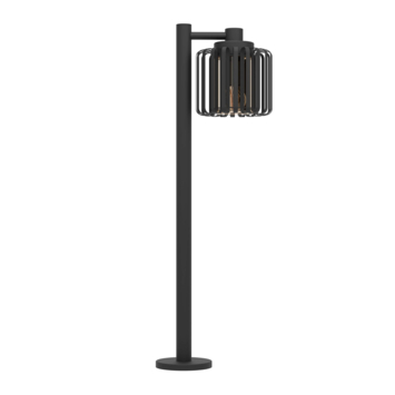 De SELINUS-bolder bestaat uit een zwart metalen behuizing gecombineerd met een ronde naar beneden gerichte lampenkap, gemaakt van platte metalen strips en omsloten een glazen cilinder. Het gestreepte ontwerp vormt een perfecte aanvulling op de unieke uitstraling van deze vloerlamp en creëert tegelijkertijd een aangename lichtsfeer en indirecte verlichting. De paal is beschermd tegen stof en spatten (IP65), zodat hij zonder angst buiten kan worden gebruikt. Dankzij het elegante design past hij in elke moderne buitenruimte: de ideale buitenarmatuur voor entrees en paden. De afgebeelde E27-lichtbron is niet inbegrepen.