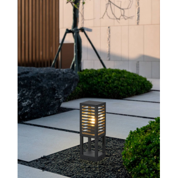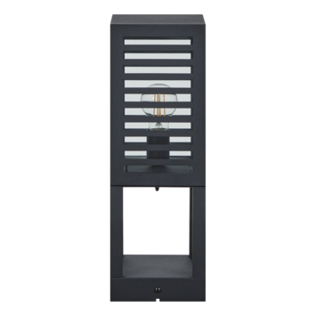 De ALAMONTE 3 tuinsokkel bestaat uit een vierhoekig stuk zwart metaal met glazen ruiten aan de bovenkant. Het gestreepte ontwerp vormt een perfecte aanvulling op de unieke uitstraling van dit armatuur en zorgt voor een aangename lichtsfeer en indirecte verlichting. Deze bolderlamp is spatwaterdicht (IP44), kan zonder angst buiten worden gebruikt en past perfect in moderne buitenruimtes. De afgebeelde lichtbron is niet inbegrepen. De buitenlamp is compatibel met elke E27-lichtbron.