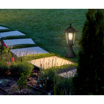 De Eglo tuinsokkel Laterna zwart is een klassieke buitenlamp en een sfeervolle toevoeging voor de tuin. Deze sokkel is gemaakt van zwart gelakt aluminium en transparant glas waardoor je de verlichtingsbron goed kan zien. Combineer deze sokkel met bijvoorbeeld een sfeervolle LED-lichtbron met een filament draad voor een vintage effect.