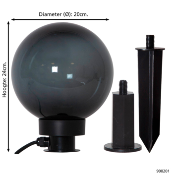 De buitenlamp MONTEROLLO SMOKE heeft een bolvormig zwart-transparant kunststof lichaam, ideaal voor indirecte verlichting in de tuin. Met deze bollamp kan je lichtaccenten zetten door muren, planten en paden te verlichten. De buitenlamp heeft een IP44-classificatie, wat betekent dat hij spatwaterdicht is en geschikt voor buitengebruik. Door het minimale ontwerp en de diameter van 20 cm biedt de buitengrondlamp decoratieve verlichting in elke moderne buitenruimte - of dat nu in de tuin of op het terras is. De MONTEROLLO is compatibel met elke E27-lichtbron, niet inbegrepen. De kabellengte is 5 meter.