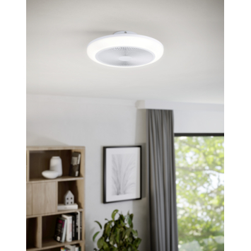 Met de EGLO ventilator met LED verlichting Sayulita in wit kies je voor een plafondventilator die een frisse en moderne uitstraling combineert met multifunctionele eigenschappen. Deze ventilator heeft een diameter van 46 centimeter en is volledig wit afgewerkt, waardoor hij naadloos in uiteenlopende interieurstijlen past.
