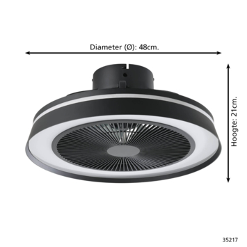 De EGLO ventilator met LED verlichting Vallonia in zwart is een plafondventilator die strak design combineert met geavanceerde functionaliteit. Met een diameter van 48 centimeter en metalen flat-blades krijgt iedere ruimte een moderne en stijlvolle uitstraling.