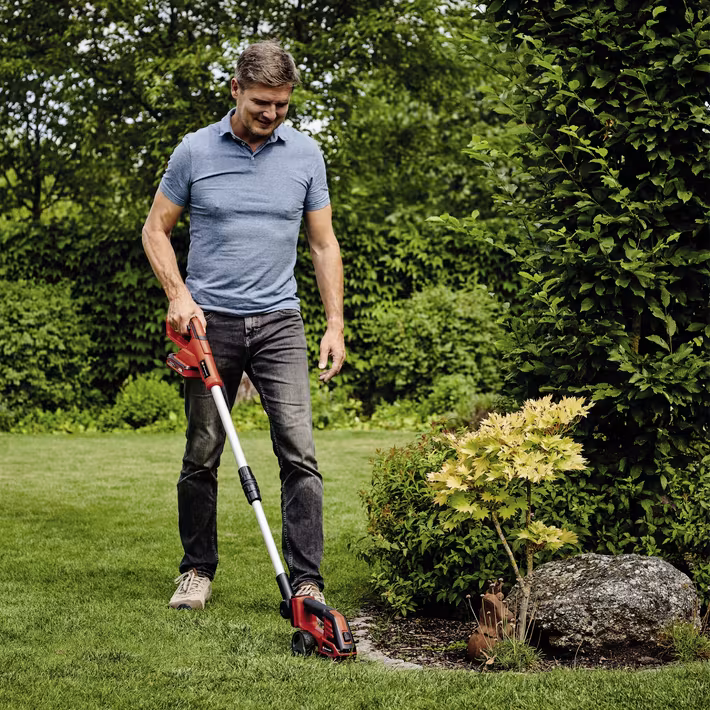 Met een knipbreedte van 100 mm is de grasfunctie ideaal voor het netjes bijwerken van gazonranden. Voor het snoeien van hagen en struiken zijn de lasergesneden en diamantgeslepen heggenschaarmessen perfect geschikt. Het gereedschapsloze systeem laat je snel en eenvoudig wisselen tussen de grasschaar en de heggenschaar. De softgrip op de handgreep zorgt voor een comfortabele en veilige grip tijdens het werken.