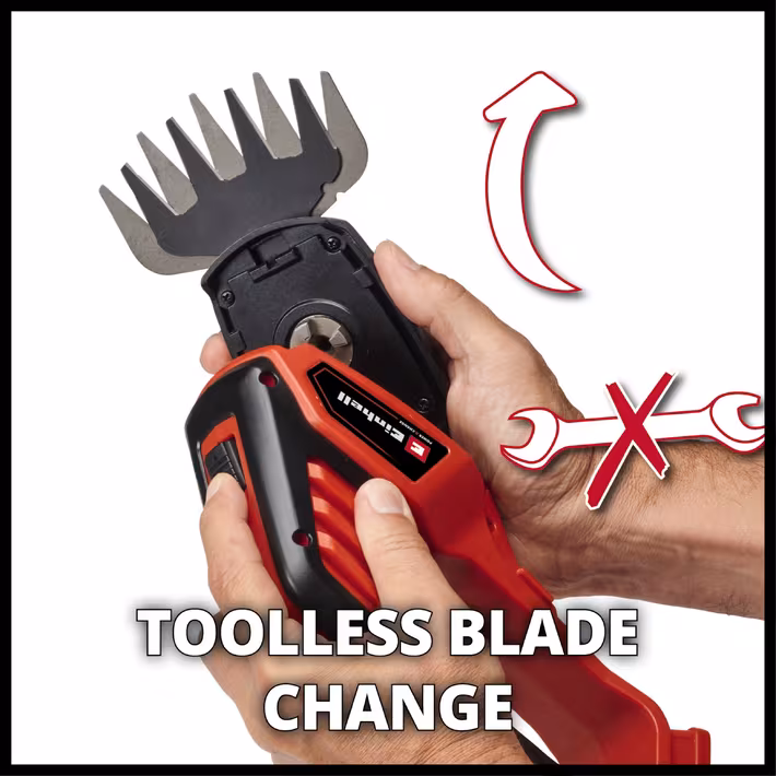 - Gereedschapsloze wisseling: eenvoudig schakelen tussen gras- en heggenschaarmessen