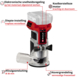 De Einhell accu kantenfrees TP-ET 18 Li BL is een veelzijdige helper bij DHZ-werkzaamheden. Als onderdeel van de Power X-Change productlijn biedt de kantenfreesdraadloze vrijheid zonder stroomkabel en zonder contactdoos in de buurt thuis, in de werkplaats en garage. De koolborstelloze motor biedt meer vermogen en een langere levensduur dan conventionele borstelmotoren. De traploze toerentalregelelektronica met krachtige motor past zich ideaal aan alle werkzaamheden aan. Voorzien van een traploos instelbare freesdiepteverstelling is een spantang van 6 en 8 mm voor diverse frezen aanwezig. De hoogwaardige aluminium uitvoering maakt precies frezen mogelijk. Dankzij de spilvergrendeling gaat het wisselen van gereedschap zeer eenvoudig. De LED-lamp zorgt voor de optimale verlichting van het werkgebied. Het kunststof inlegstuk beschermt bovendien het oppervlak van het werkstuk. Er is een opzetstuk voor de kantenfrees beschikbaar voor het afschuinen van randen. Prettig werken dankzij de ergonomische handgreep met softgrip. Inbegrepen zijn de parallelaanslag, kompaspunt, een geleidingsrol, een kopieerring en gereedschap, afzuigadapter die passend is voor Einhell nat-/droogzuigers. Geleverd zonder accu en oplader van de Power X-Change productlijn. Deze zijn apart verkrijgbaar, bijvoorbeeld als handige PXC-starterset van Einhell.