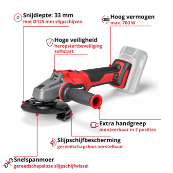 Einhell 18V slijptol / haakse slijper 125mm Axxio 18/125 Q BL (zonder accu)