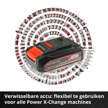 De Einhell 18 V/2.5Ah PXC Starter Kit is de ideale basis om uw Power X-Change assortiment te starten of uit te breiden. De starterkit met een 18 V/2.5Ah accu en de snellader zijn onderdeel van het multifunctionele en oneindig combineerbare Power X-Change accusysteem van Einhell. De universeel toepasbare Power X-Change accu voorziet alle accu gereedschappen van de hele Power X-Change productlijn in de tuin en in de werkplaats van kracht en vermogen. De laders zijn universeel te gebruiken voor alle PXC accu’s. De voordelen liggen voor de hand: met één accu en één lader voor alle machines bespaart u niet alleen op de aanschaf aanzienlijk, de universele toepassing beschermt het milieu en biedt tegelijkertijd flexibiliteit in huis, werkplaats en tuin. Ook is er geen gerommel met verschillende accu’s en opladers van verschillende machines. De hoogwaardige oplaadbare accu is bestand tegen het geheugeneffect en de gebruikelijke zelfontlading van de accu voor een constant, hoog vermogen. De 18 V/2.5Ah accu is ook geschikt voor TWIN-PACK technologie in 36 V toepassingen. Het processor gestuurde, actieve accu beheersysteem “ABS” bewaakt continu de parameters van de accu met behulp van de gebruikte microprocessor. Hierdoor zorgt het voor maximale veiligheid, optimale machine prestaties, maximale looptijd en maximale levensduur. De huidige laadstatus kan worden afgelezen via een LED-display met 3 niveaus. De behuizing is bestand tegen bouwstof, corrosie en mechanische invloeden. Met de verzonken handgreep kan de accu eenvoudig van alle machines worden verwijderd. De snellader heeft een compact ontwerp en neemt dus weinig ruimte in beslag, dankzij de geïntegreerde ophangogen kan de lader eenvoudig aan de muur worden bevestigd. Vanwege de snellaad technologie zijn de oplaadtijden kort, voor optimaal opladen en maximale veiligheid, wordt de accu laadcyclus constant bewaakt door het intelligente oplaadbeheer. Met de vernieuwingsmodus kunnen diep ontladen accu’s opnieuw worden geactiveerd. Alle actuele informatie wordt verstrekt door de 6-voudige status LED-indicator. Levering is inclusief 1x Power X-Change 2.5Ah accu en 1x snellader.