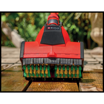 De Einhell SOFT oppervlakteborstel (hout, kunstgras) is een accessoire voor de Einhell PICOBELLA accu terrasreiniger. De zachte nylonborstel is bij uitstek geschikt voor het reinigen van hout en kunstgras, inclusief terrasplanken en vlonders van zacht hout en hardhouten profielen en WPC/BPC. Bij kunstgras reinigen de zachte borstels de vezels en zetten ze rechtop, zodat het kunstgras er weer als nieuw uitziet. De SOFT oppervlakteborstel is niet geschikt voor gesloten oppervlakken. De borstel heeft een diameter van 115 mm en een werkbreedte van 195 mm. Andere borstels voor de Einhell PICOBELLA zijn apart verkrijgbaar.
