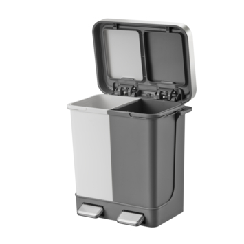 De EKO Hana Duo Recycle Pedaalemmer 10+10L is een afvalbak van kunststof bestaande uit twee kunststof binnenemmers, die afzonderlijk van elkaar via de pedalen toegankelijk zijn. Voorzien van gedempt sluitend deksel met rondom een metalen frame die de afvalzakken uit het zicht houdt. De zichtbare gekleurde binnenemmers maken afvalscheiding eenvoudig, zijn makkelijk uitneembaar en zorgen ervoor dat de pedaalemmer snel schoon te maken is.