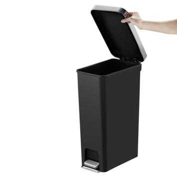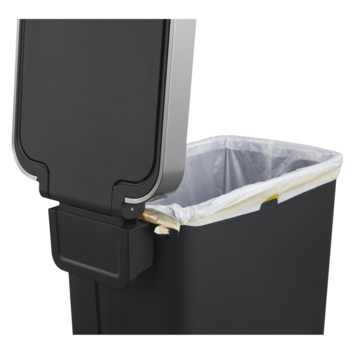 De EKO Hana Slim pedaalemmer 40L is een functionele pedaalemmer van kunststof met opvallende RVS rand en gedempt sluitend deksel. Door het slanke design en het pedaal aan de smalle zijde uitermate geschikt voor smalle ruimten. De afvalbak bevat geen binnenemmer waardoor extra ruime capaciteit. De brede, overlappende rand houdt de afvalzak op zijn plaats en uit het zicht. De rand zorgt er tevens voor dat de afvalbak volledig open gezet kan worden voor het makkelijk schoonmaken van de afvalbak of wisselen van de afvalzak.