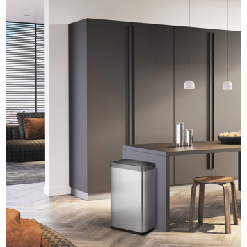 De EKO Mirage X Sensor Afvalbak 80L is een grote capaciteit sensor afvalbak van mat RVS voorzien van fingerprint proof coating. Bevat een afvalzakhouder en geen binnenemmer waardoor extra ruime inhoud. Het sensormechanisme voorzien van dynamisch display zorgt voor een simpele bediening en het automatisch en geruisloos openen en sluiten van het kunststof deksel. Door het afneembare deksel is de afvalzak eenvoudig te wisselen. Werkt op 6x AA batterijen (niet inbegrepen).