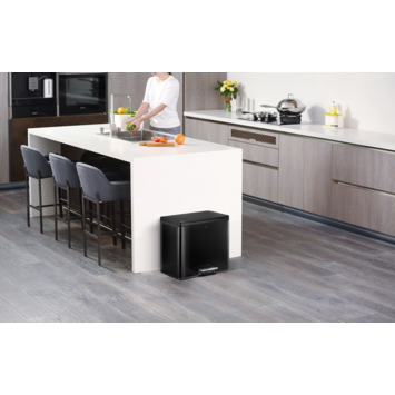Deze rechthoekige pedaalemmer van EKO Essential 2 maakt het eenvoudig en hygiënisch om afval te scheiden. Met drie kunststof binnen emmers van elk 9 liter houd je je keuken netjes en overzichtelijk. Dankzij de stay-open functie blijft het deksel openstaan, waardoor het schoonmaken en vervangen van de zakken een fluitje van een cent is. De fingerprint proof coating voorkomt vingerafdrukken, terwijl de geborsteld RVS afwerking zorgt voor een moderne uitstraling. Dit is de ideale oplossing voor een georganiseerde en schone keuken. Ontdek deze pedaalemmer bij Karwei.