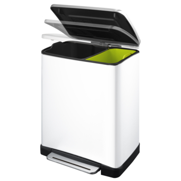 De EKO Recycle E-Cube Pedaalemmer 28+18L is een stijlvolle rechthoekige pedaalemmer met extra breed pedaal en 2 kunststof binnenemmers (18 en 28 ltr). Voorzien van gedempt deksel en stay-open functie. Aan de binnenzijde van het deksel is ruimte voor een carbonfilter om geurtjes te voorkomen.