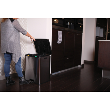 De EKO Recycle Rejoice Pedaalemmer 2x30L is een ruime rechthoekige pedaalemmer van mat RVS met 2 kunststof binnenemmers (2x 30 ltr). Voorzien van gedempt kunststof deksel en Fingerprint Proof coating.