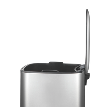 De EKO Regent Pedaalemmer 12L is een vierkante pedaalemmer van geborsteld RVS met fingerprint proof coating. Voorzien van kunststof binnenemmer, handgreep aan de achterzijde en geruisloos sluitend deksel met opvallend design.