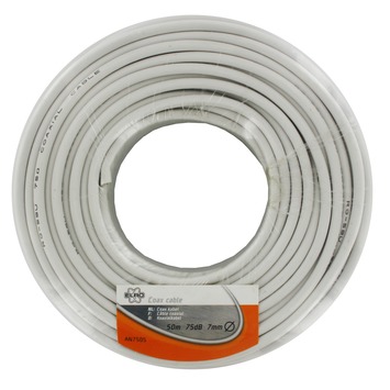 ELRO coax kabel afgeschermd AN750S wit, voor het aanleggen van een antenne-installatie en het aansluiten van radio en televisie. Deze 50 meter lange witte coax kabel heeft een dikkere kern voor een betere geleiding van het signaal. De kabel is afgeschermd tegen storingssignalen tot 75 decibel. Voor minimaal signaalverlies kun je het beste afgeschermde pluggen monteren.