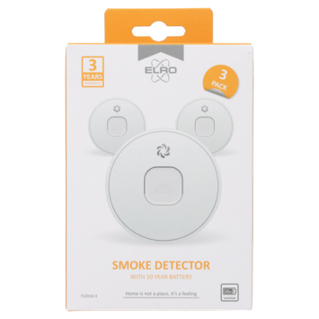Met de Elro FS2010-3 optische rookmelder met 10 jaar lithium batterij TRIPLE-pack ben je jarenlang beschermd tegen brand. Deze set bevat drie rookmelders die elk werken op een ingebouwde lithium batterij met een levensduur van 10 jaar. De rookmelders geven een luid alarmsignaal van 85 dB zodra er rook wordt gedetecteerd. Zo hoor je het meteen, ook ’s nachts, en kun je op tijd reageren om gevaar te voorkomen.