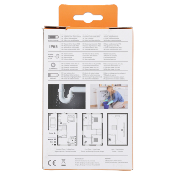 Je hebt geen gereedschap of schroeven nodig om deze watermelder te installeren. Leg hem simpelweg op de vloer in ruimtes met risico op lekkage zoals de kelder, badkamer of keuken. Testen is makkelijk: leg de sensor op een schaaltje met een dun laagje water. Zodra het alarm klinkt, weet je dat alles werkt zoals het hoort.