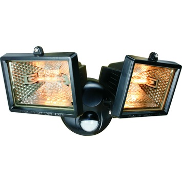 De Elro Security light dubbele buitenlamp met bewegingsmelder 2X120W heeft een dubbele lamp en is daardoor perfect voor het verlichten van de donkerder (buiten)ruimten in de tuin of garage waar geen natuurlijk daglicht is. De lamp is bovendien uitgerust met een bewegingsmelder, daardoor springt het licht automatisch aan zodra je een ruimte of bepaalde zone betreedt. De Elro Security light dubbele buitenlamp met bewegingsmelder 2X120W maakt gebruik van halogeenverlichting.