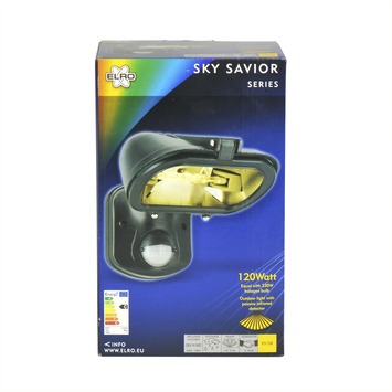 De Elro Sky Savior breedstraler 120W met bewegingsmelder is een schijnwerper met halogeenverlichting. Dankzij de ingebouwde bewegingsmelder gaat het licht alleen aan wanneer dit nodig is. De Elro Sky Savior breedstraler 120W met bewegingsmelder is weerbestendig en weerstaat sproeistralen. Daardoor is de lamp niet alleen beschermd tegen alle weersomstandigheden, maar kan er ook tegen wanneer deze in aanraking komt met de waterstraal uit een tuinsproeier.