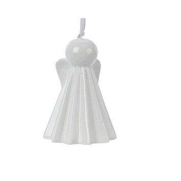 Het kerstseizoen is een seizoen vol met decoratie, verlichting en gezelligheid. Jij ontwerpt het interieur met jouw eigen creativiteit. Om het huis een aangenaam warm uiterlijk te geven, kies je de meest unieke en mooie decorstukken. Dit prachtige engeltje hoort daar zeker bij! Dit witte engeltje is gemaakt van porselein en bevat een belletje. Dit decorstuk is 8,5 centimeter lang. Ook kun je Het engeltje ophangen.