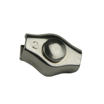 De enkele staaldraadklem 2 mm is een enkele staaldraadklem geschikt voor een staaldraad met een diameter van 2 millimeter. De klem gemaakt van het hoogwaardige roestvrijstaal 316 en is daardoor goed bestand tegen zowel zoet als zout water. De staaldraadklem wordt gebruikt voor het maken en vastzetten van een lus in een staaldraadkabel. Geadviseerd wordt om minimaal twee enkele staaldraadklemmen te gebruiken per lus.