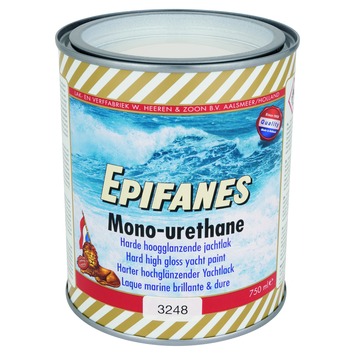 Epifanes Mono-urethane is een hoogglanzende, slijtvaste ééncomponenten jachtlak. Door zijn optimale dekking en glans beschermt de lak langdurig tegen diversen weer-en wateromstandigheden. Deze moderne harde jachtlak kenmerkt zich door de snelle harding en belastbaarheid. Voor nieuw werk op hout, staal, aluminium en polyester, voor binnen en buiten maar boven de waterlijn. Deze jachtlak kan zonder primer op een voorbehandelde gelcoat worden aangebracht. Ook geschikt voor onderhoud van bestaande ééncomponenten lak.