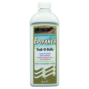 Epifanes Teak-O-Bello is een watergedragen beschermingsmiddel voor teak en voorkomt voor langere tijd vergrijzing. Het product is snel en eenvoudig aan te brengen en voorkomt schimmelvorming. In tegenstelling tot vele teakolies tast Teak-O-Bello de kitnaden in teakdekken niet aan. Geschikt voor zoet en zout water maar boven de waterlijn.