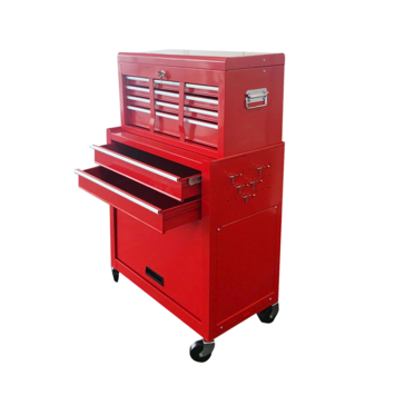 De Erro 6-laden combinatieset - kar met opzetkist is het neusje van de zalm op het gebied van opbergers. Met deze luxe uitgevoerde gereedschapswagen vervoert u uw gereedschap op praktische en stijlvolle wijze. De wagen biedt ruim voldoende opbergruimte dankzij de 6 laden (4 in de opzetkist en 2 in de wagen). Bovendien is de opzetkist afneembaar van de wagen en voorzien van een handige bovenklep. Zo vindt u altijd direct de materialen die u nodig heeft. Dankzij de wielen is de gereedschapswagen mobiel en verplaatst u uw klus materialen met groot gemak.