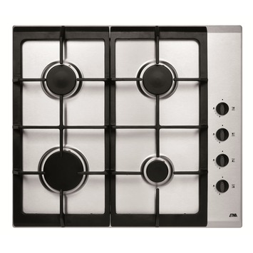 De Etna gaskookplaat T110VRVSA 4-pits 58cm rvs heeft 4 branders die een variërend vermogen hebben van 1 kWh tot 3 kWh met matzwarte deksels. De kookplaat heeft 2 pandragers van gietijzer. De vangschaal van de gaskookplaat is roestvrij staal. Dankzij de elektrische vonkontsteking hoef je geen aansteker of lucifers te gebruiken om het gas aan te steken en komen je vingers nooit in aanraking met het open vuur. De vlambeveiliging sluit de gastoevoer af zodra de vlam wegvalt, zo kook je altijd veilig. De inbouwmaten van deze gaskookplaat zijn 39x560x490 millimeter wat ideaal is voor het vervangen van standaard gaskookplaten. De gaskookplaat wordt geleverd in de kleur rvs.